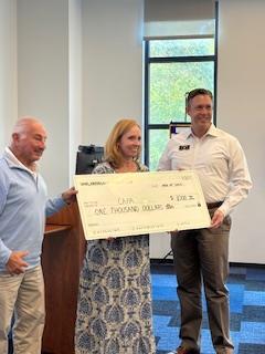 Checks were presented to Friends of Caroline (top) - $2500, Bluffton Community Kitchen (middle) - $1000, and CAPA (bottom) = $1000
