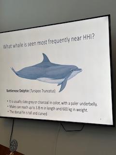 Mike Williamson provided a fascinating presentation about whales and research. The Right whales come here to breed. They swim close to shore and come here to calve. There were 11 calves this year - 19 or 20 last year. This area is important for calving. Google “whale map” whalemap.org