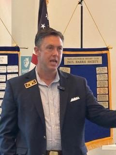 An expert on fraud, Special Agent Graves began by putting $5 in Happy$ because he said these days he is happy "just to be invited anywhere". He has spent most of his career working on fraud and spoke of how technology has contributed to the crime of fraud. He gave several examples of scams, particularly related to our area, as well as some "red flags" that you should watch out for.