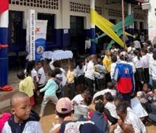 Photo: Students prepare for the Peace Pole ceremony in Madagascar sponsored by the Rotary eClub of Global Peacebulders (District 7610—Virginia).